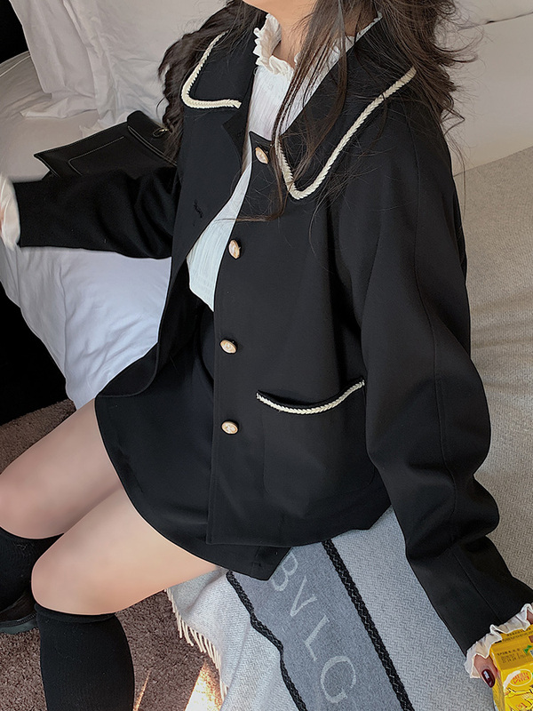 早秋女裝韓版簡約百搭寬松學生翻領排扣襯衫